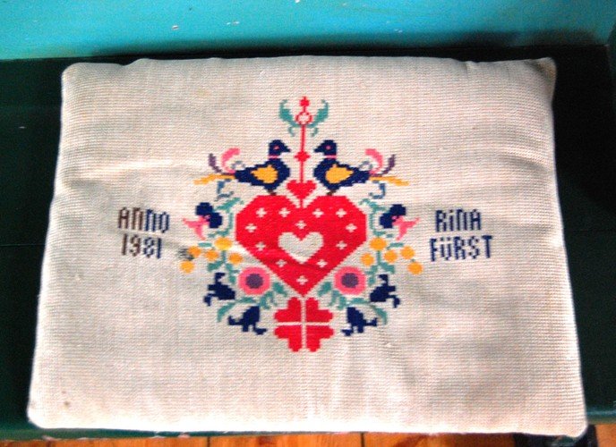 Zu den schönen traditionellen Besonderheiten der St. Salvatoris Kirche gehören die von Gemeindemitgliedern im Kreuzstich gestickten Sitzkissen.